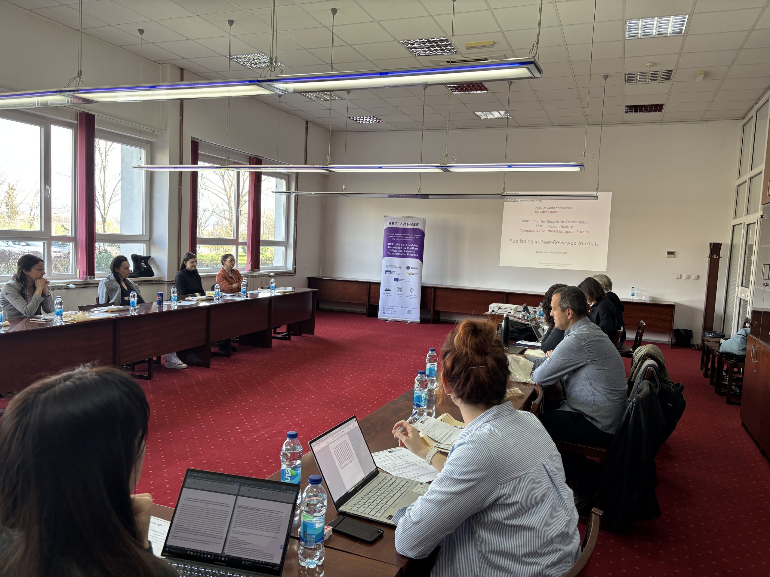 U okviru projekta RETLAMI-SEE, na Fakultetu političkih nauka Univerziteta u Banjoj Luci, 19–20. marta 2026. godine održana je dvodnevna radionica „Publishing in Peer-Reviewed Journals“, koju su vodile urednice naučnih časopisa iz Leibniz Instituta za studije Istočne i Jugoistočne Evrope (IOS), Regensburg— dr Sabine Rutar (Comparative Southeast European Studies) i prof. dr Katharina Kucher (Jahrbücher für Geschichte Osteuropas). Radionica je bila osmišljena kao izrazito praktični program koji je kombinovao uredničku perspektivu sa intenzivnim radom u grupi i razmjenom među učesnicima.